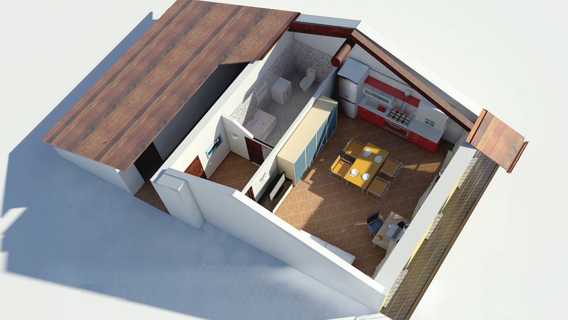Ai lati le tettoie, e le stalle e vari locali di sgombero si prestano come da un progetto di riqualificazione, ad essere suddivisi volendo le villette a schiera disposte su due livelli, con un piccolo giardino di proprietà. Nell'interrato cantine e depositi. La proprietà dispone di varie entrate sia carraie sia pedonali.