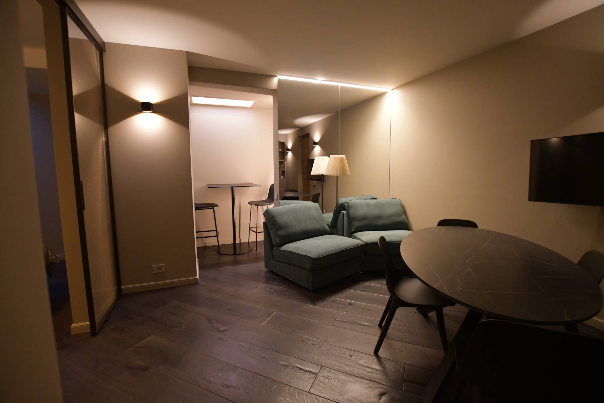 L'unità immobiliare è composta da un ampio locale utilizzato come soggiorno con angolo cottura , una zona notte separata con letto matrimoniale, un bagno moderno e di design, sauna ad infrarossi.