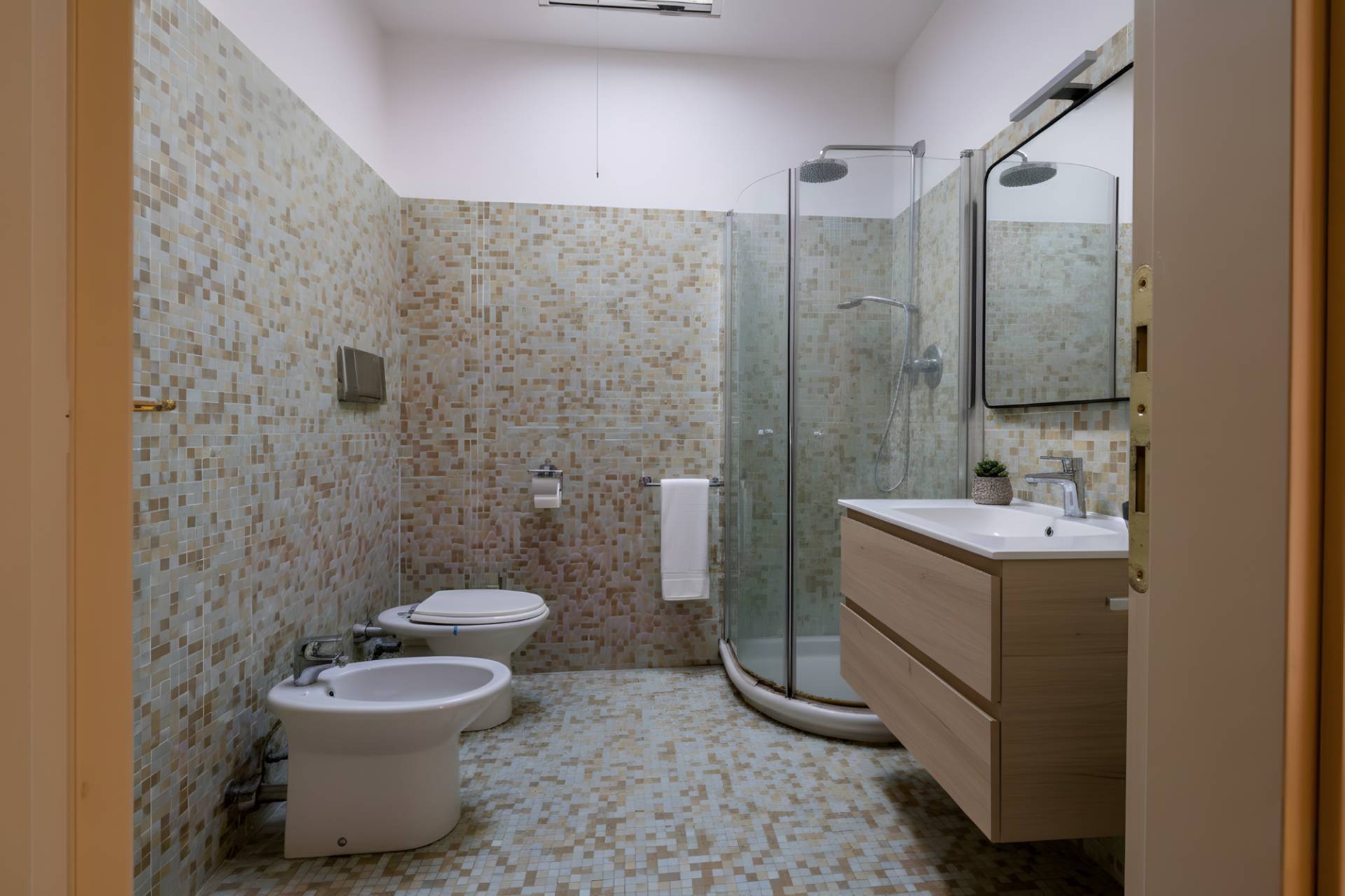 tramite una comoda scala interna arriviamo al piano superiore, dove troviamo quattro camere da letto di cui tre matrimoniali, e doppi servizi. Completa la proprietà un box auto doppio, due posti auto scoperti ed una cantina.