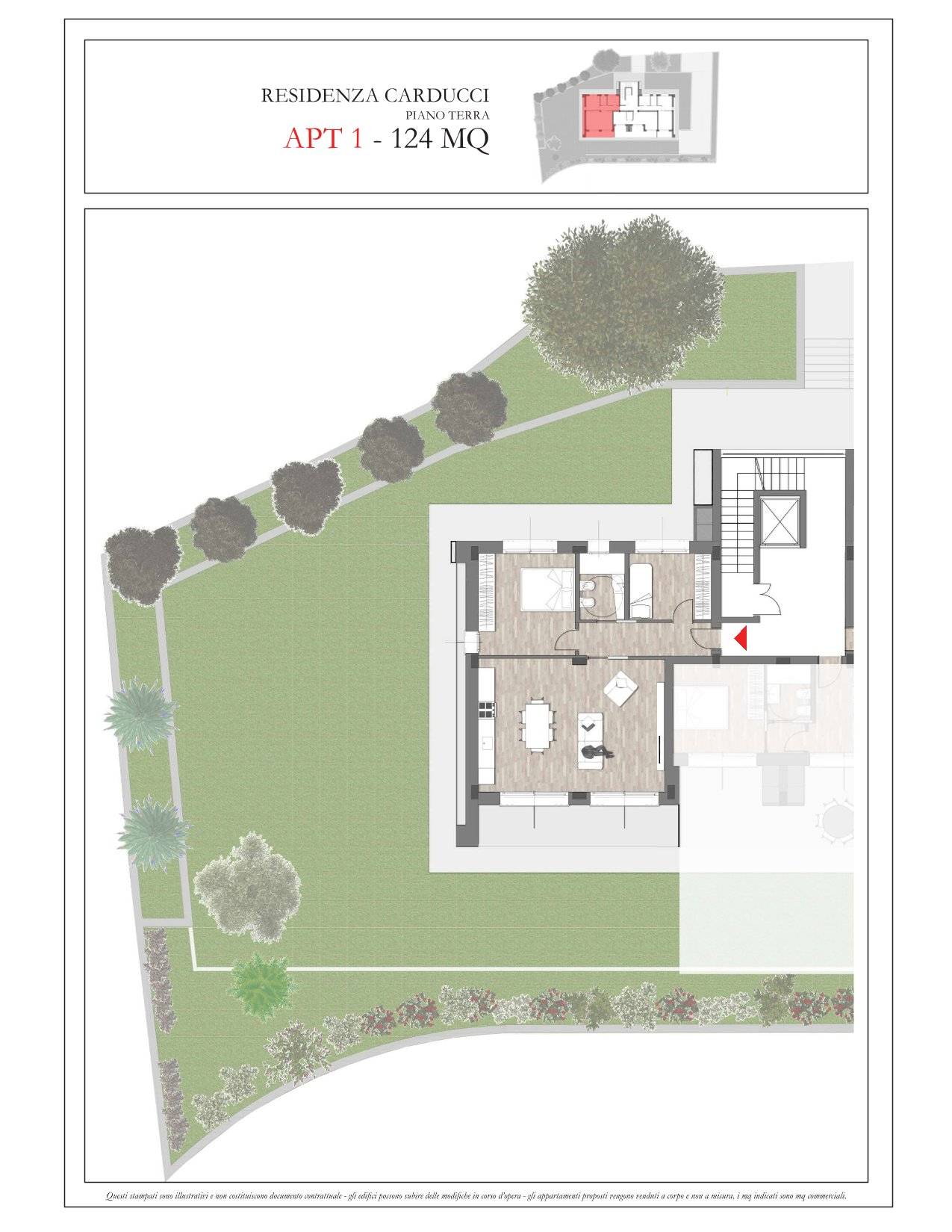 1 Bilocale di M² 75 comm.li con Verde privato e Solarium