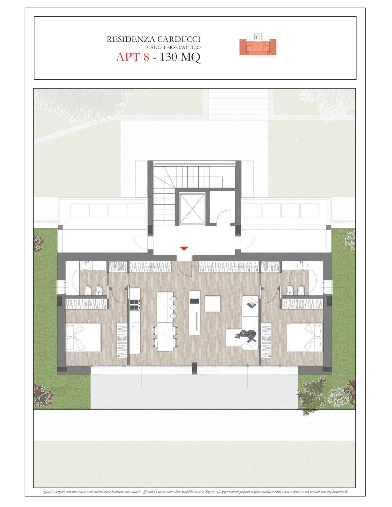 1 Attico quadrilocale di M² 130 comm.li con Verde privato e Terrazzo Solarium, 2 camere da letto