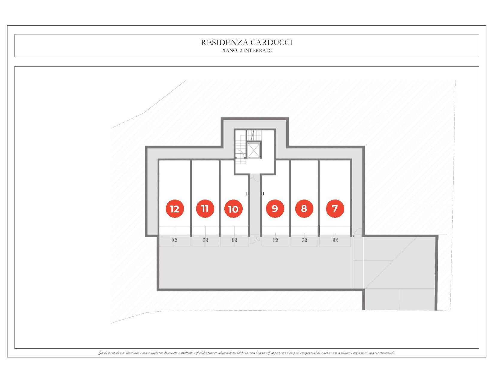Tutte le Unità hanno una cantina pertinenziale al piano interrato e disponibili n. 12 box auto singoli o doppi venduti a parte.