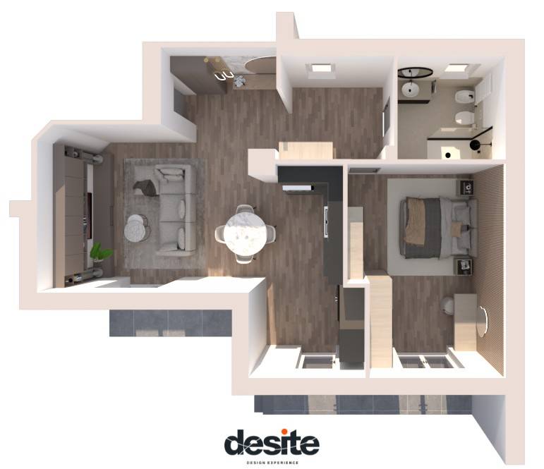 Volendo mantenere questi locali, si può ottenere soggiorno living con angolo cucina, cameretta, camera matrimoniale e bagno, oppure cucina, soggiorno grande camera da letto e bagno.