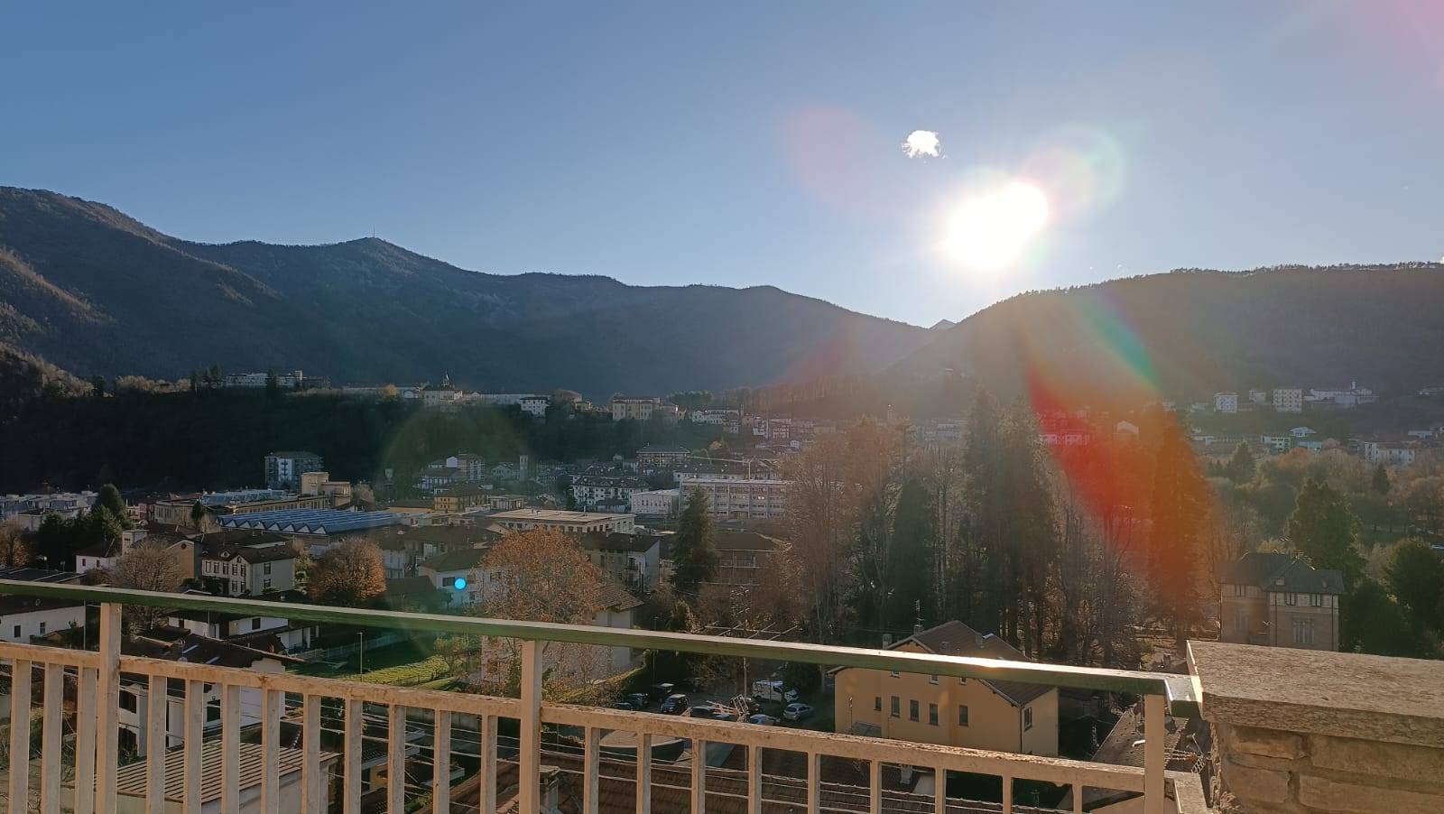 L'area esterna di questo particolarissimo Appartamento è impreziosita da un grande terrazzo di 65 mq da cui si gode una favolosa vista sul paese e su tutta la valle di Lanzo.
