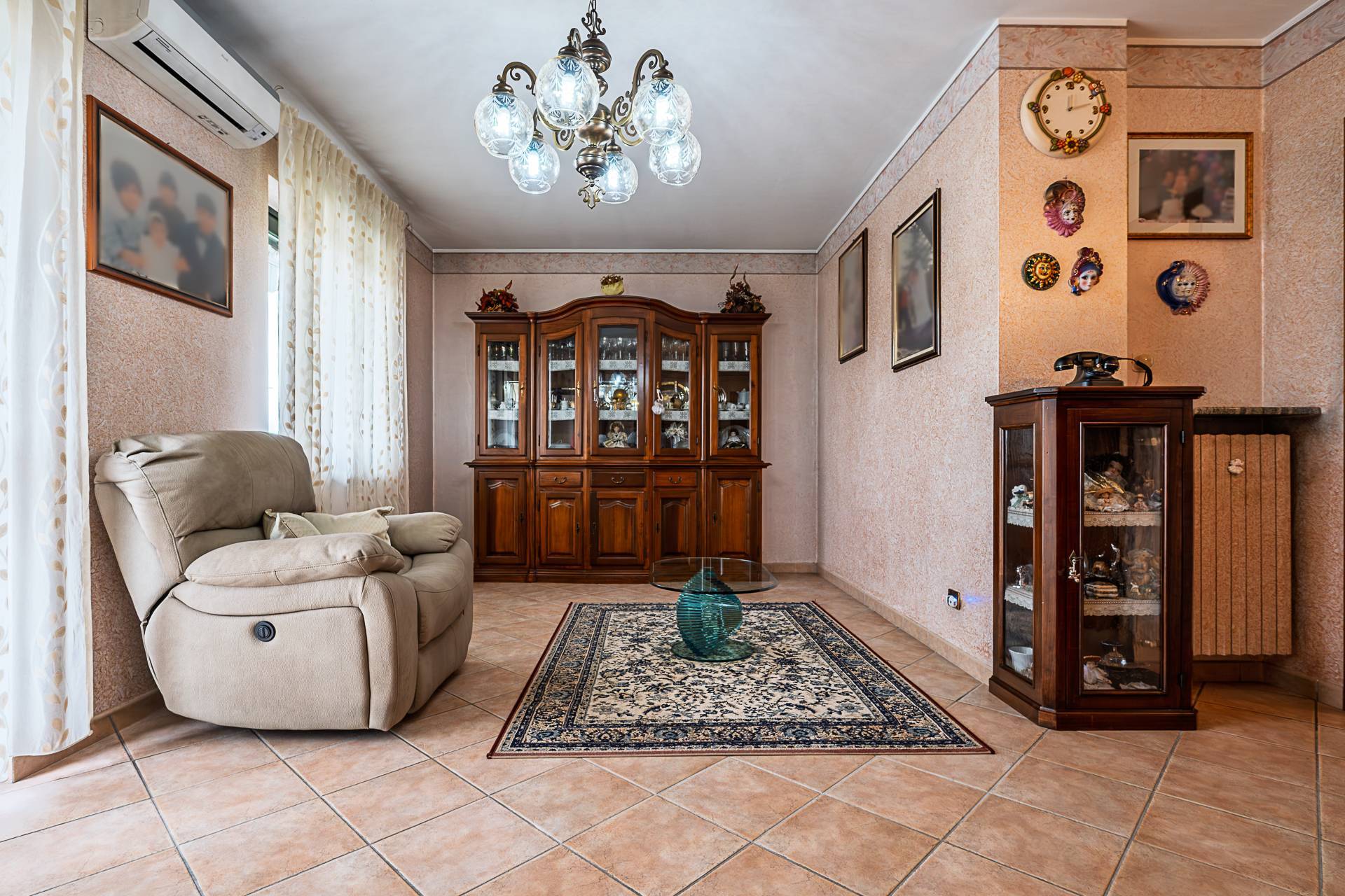 Situato al primo piano di un edificio di due piani, con una superficie catastale di 166 metri quadrati. L'Appartamento è così composto: al piano terra ingresso su luminoso soggiorno, cucina abitabile con affaccio su grazioso e ben curato terrazzino, una spaziosa camera da letto e un bagno dotato di doccia.