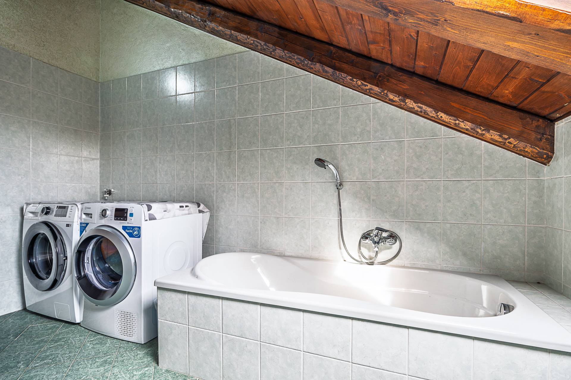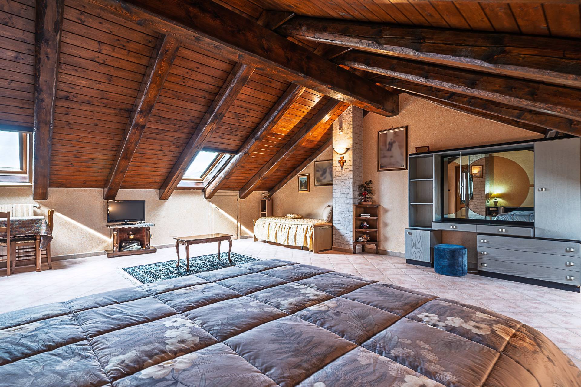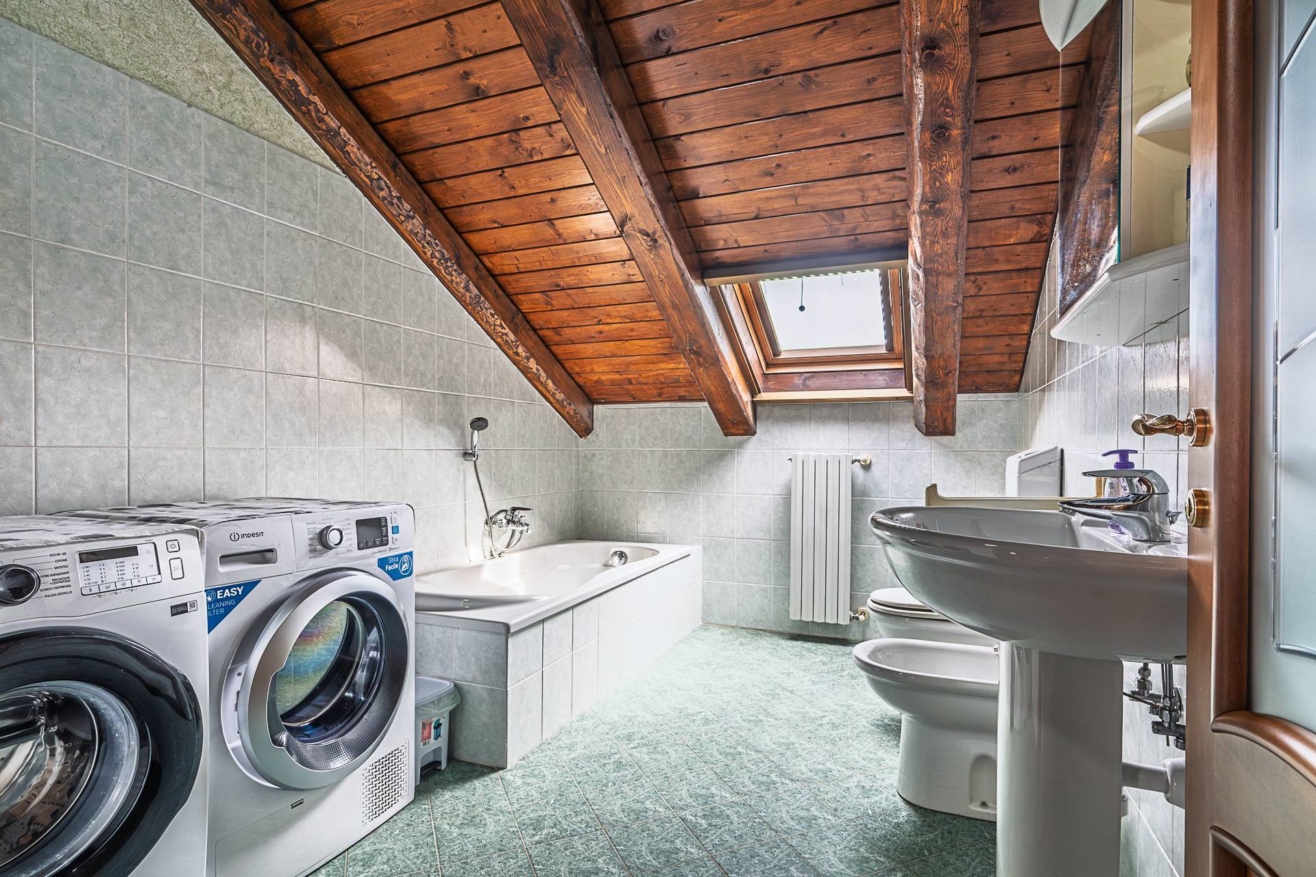 Tramite una comoda scala posta nel soggiorno si accede al piano sottotetto dove troviamo un ampia mansarda ed un ampio bagno con vasca.