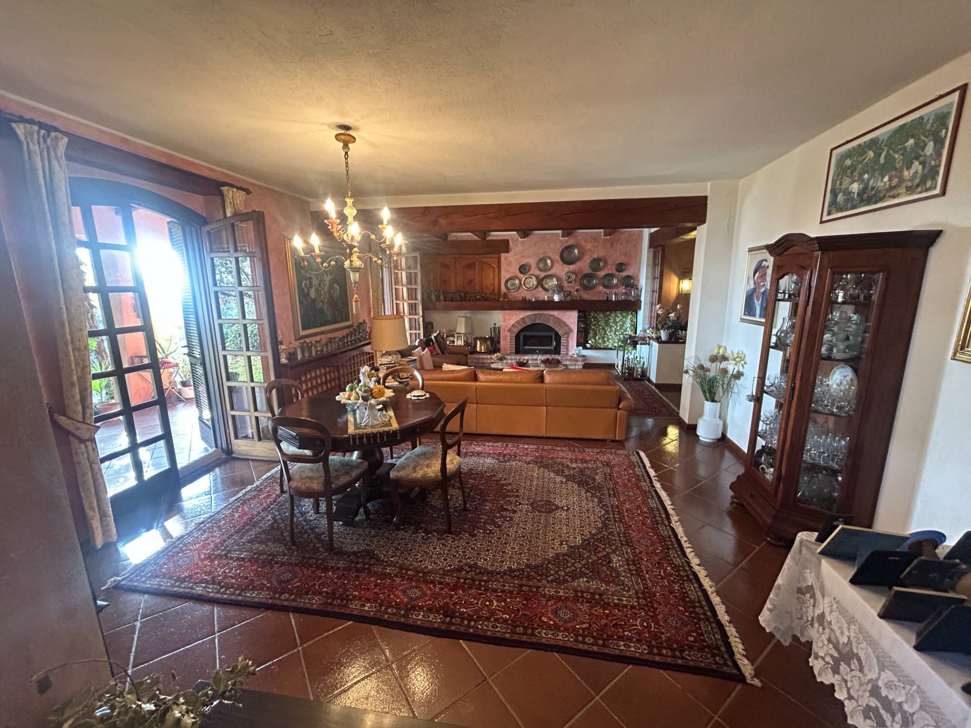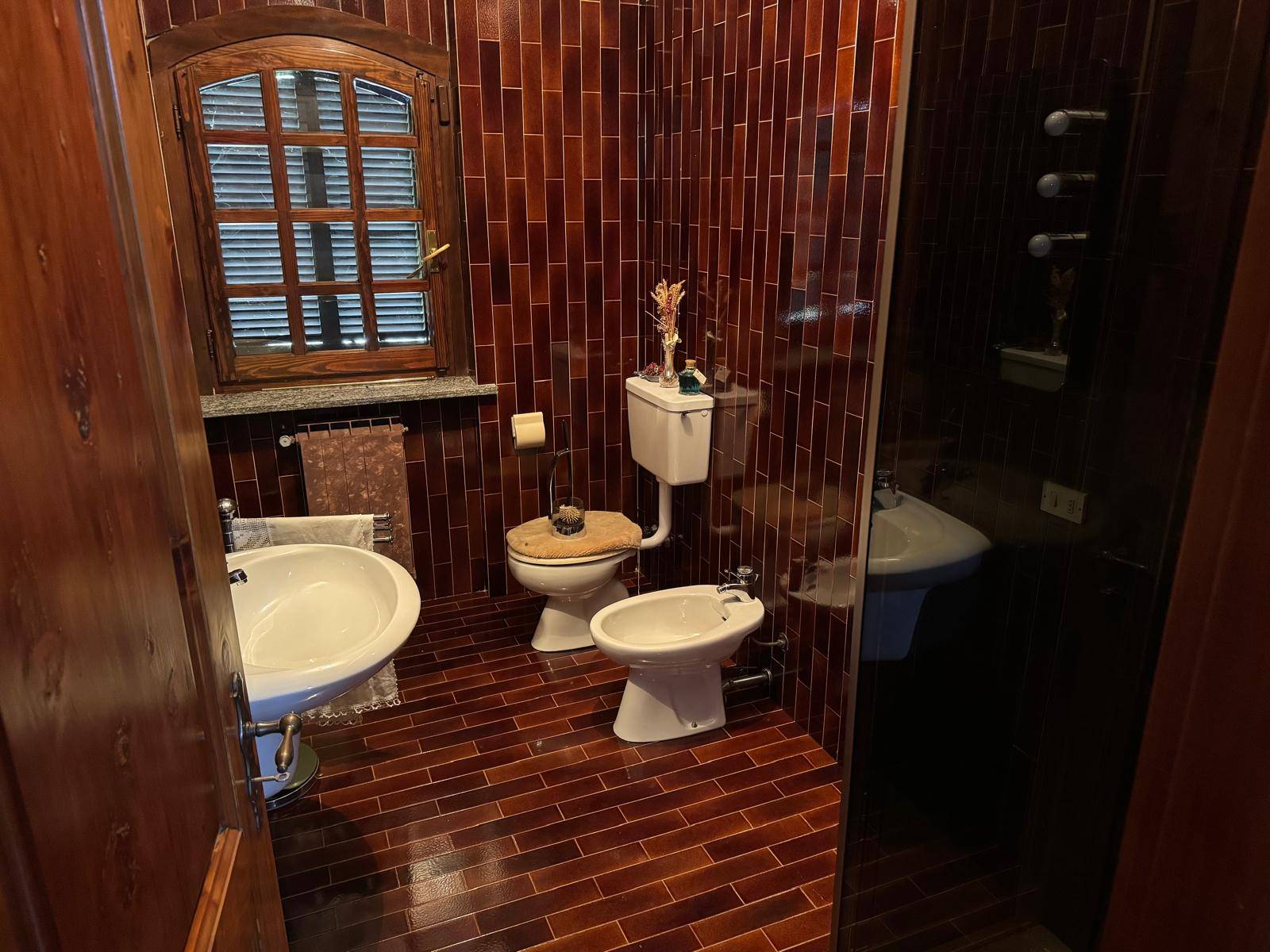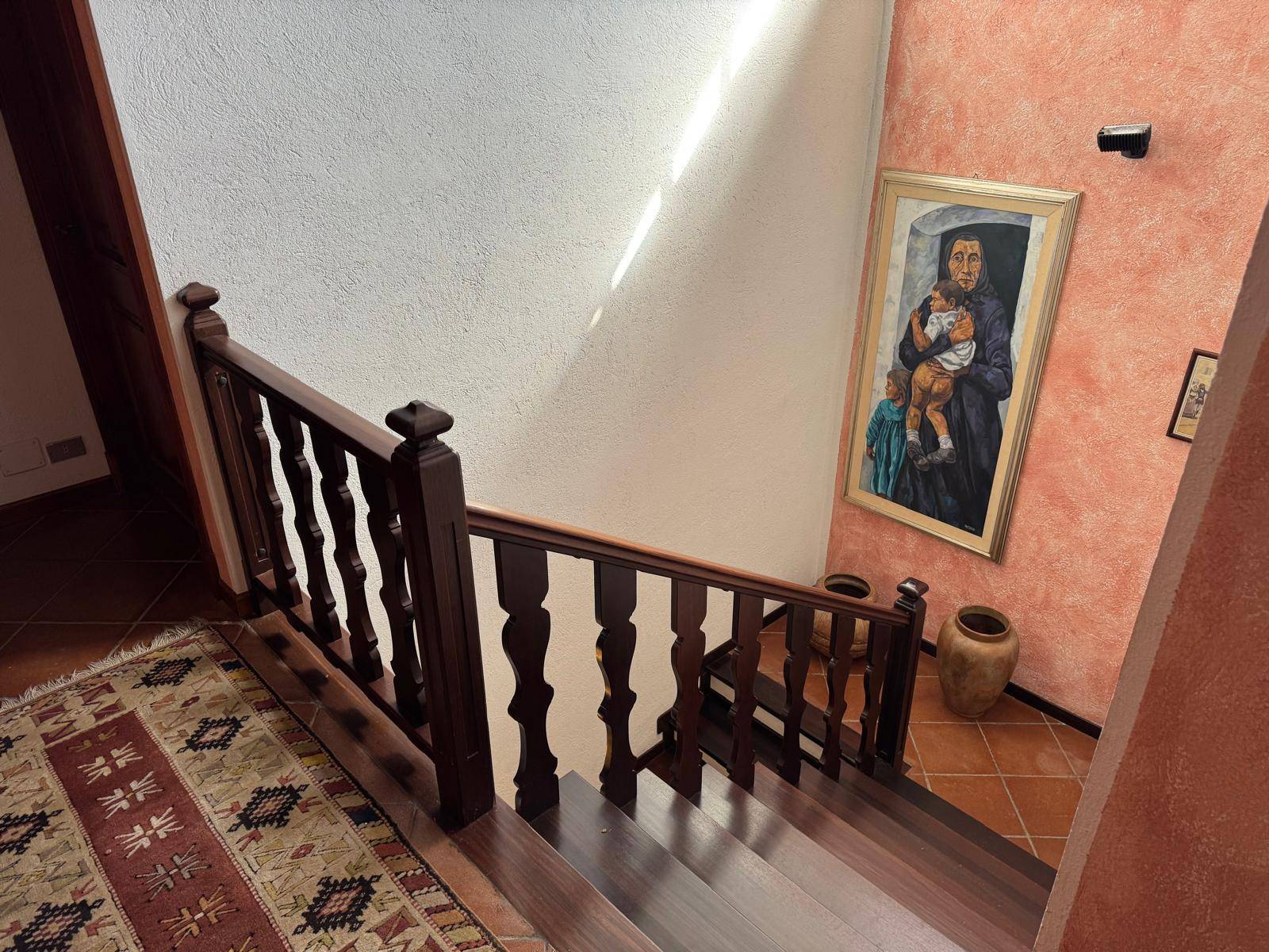 Tramite una comoda scala arrivimo al piano primo dove ci accolgono tre ampie camere da letto servite tre comodi bagni. Completa la proprietà un ampio locale seminterraro composto da un ampio box, un importante cantina, una tavernetta con camino e vari locali di sgombero tra cui un bagno, il tutto immerso in parco piantumato.