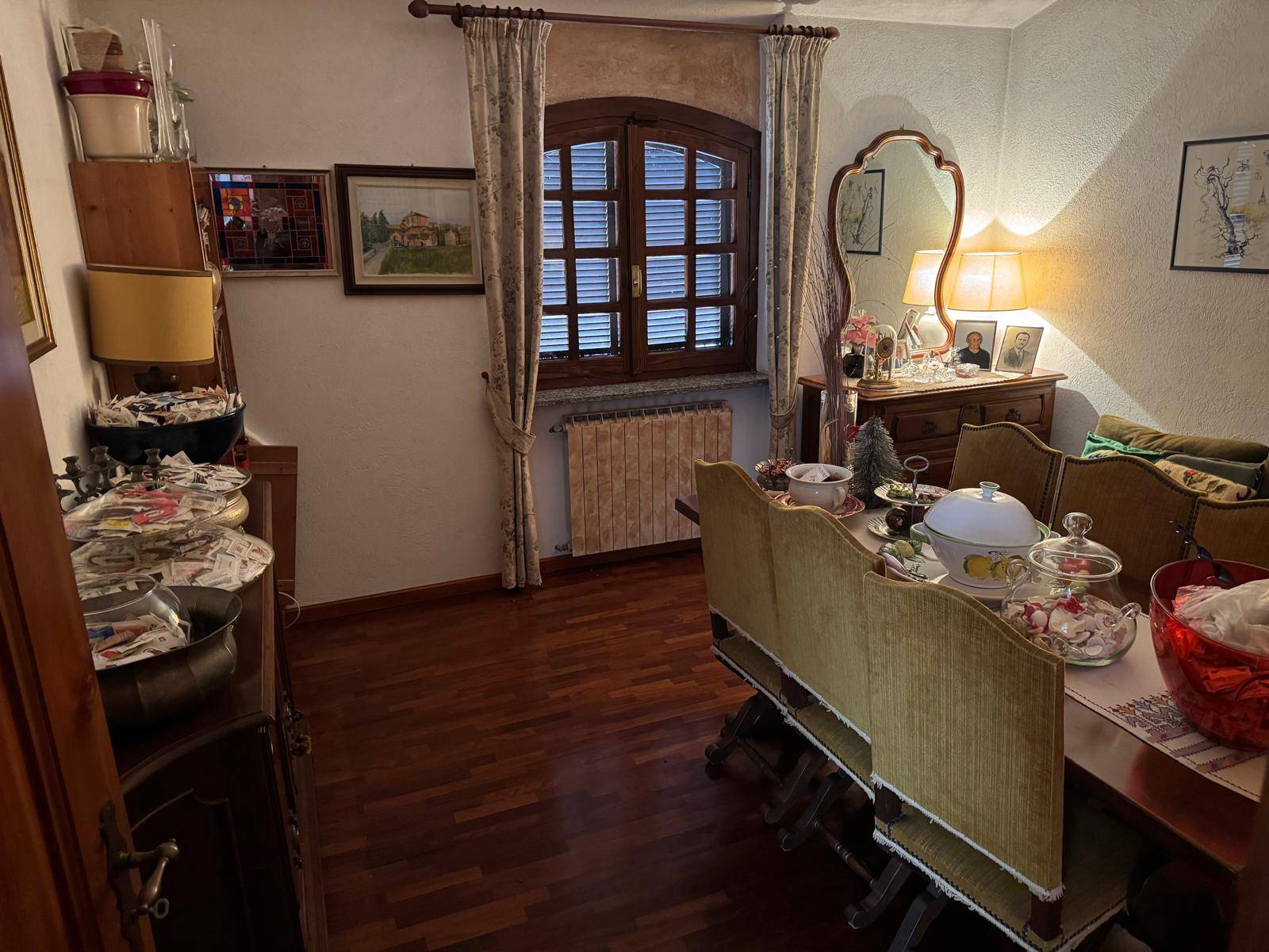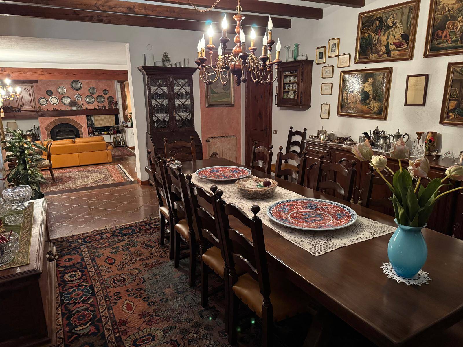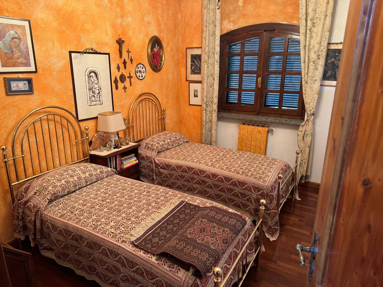 Tramite una comoda scala arrivimo al piano primo dove ci accolgono tre ampie camere da letto servite tre comodi bagni. Completa la proprietà un ampio locale seminterraro composto da un ampio box, un importante cantina, una tavernetta con camino e vari locali di sgombero tra cui un bagno, il tutto immerso in parco piantumato.
