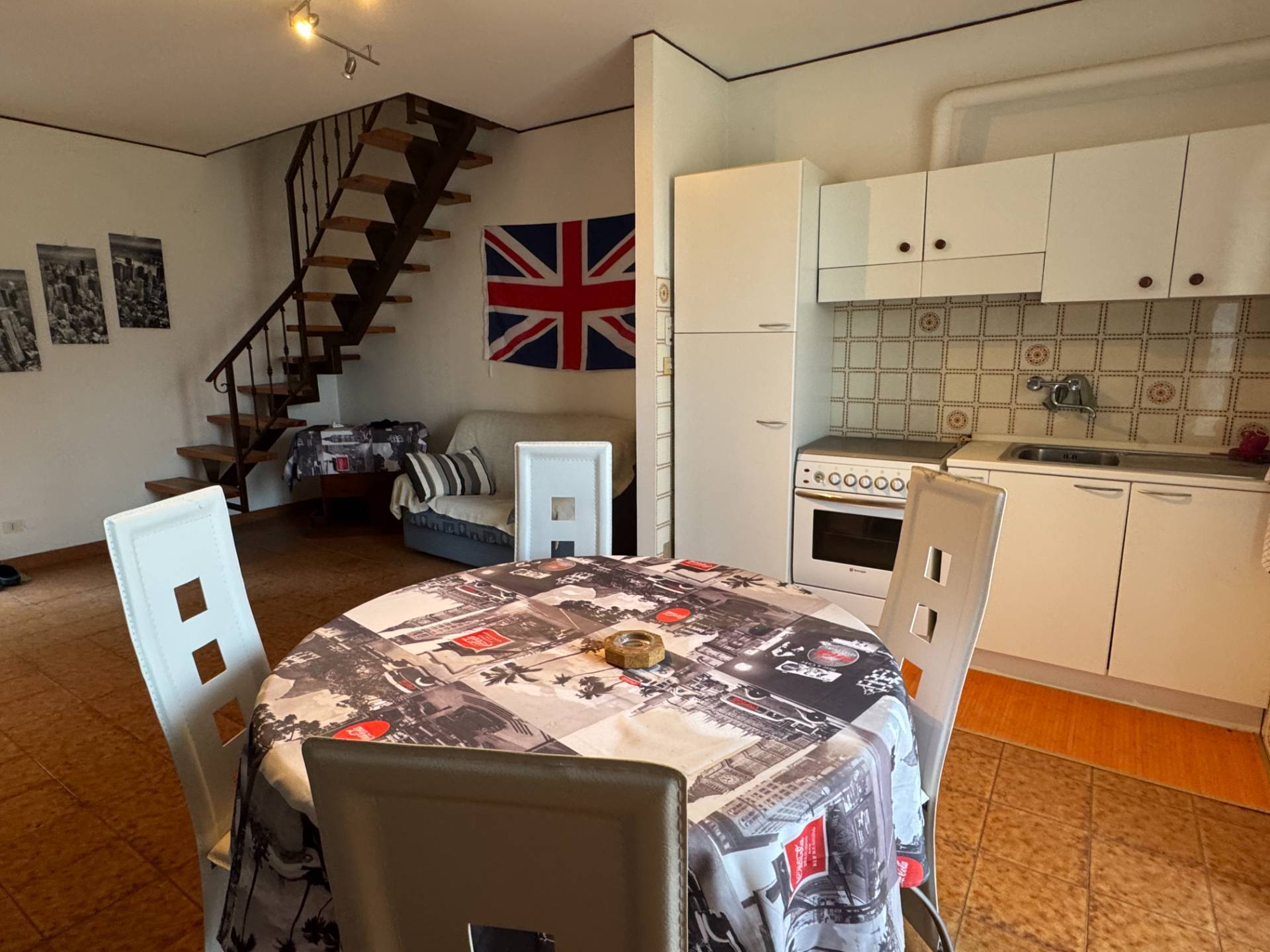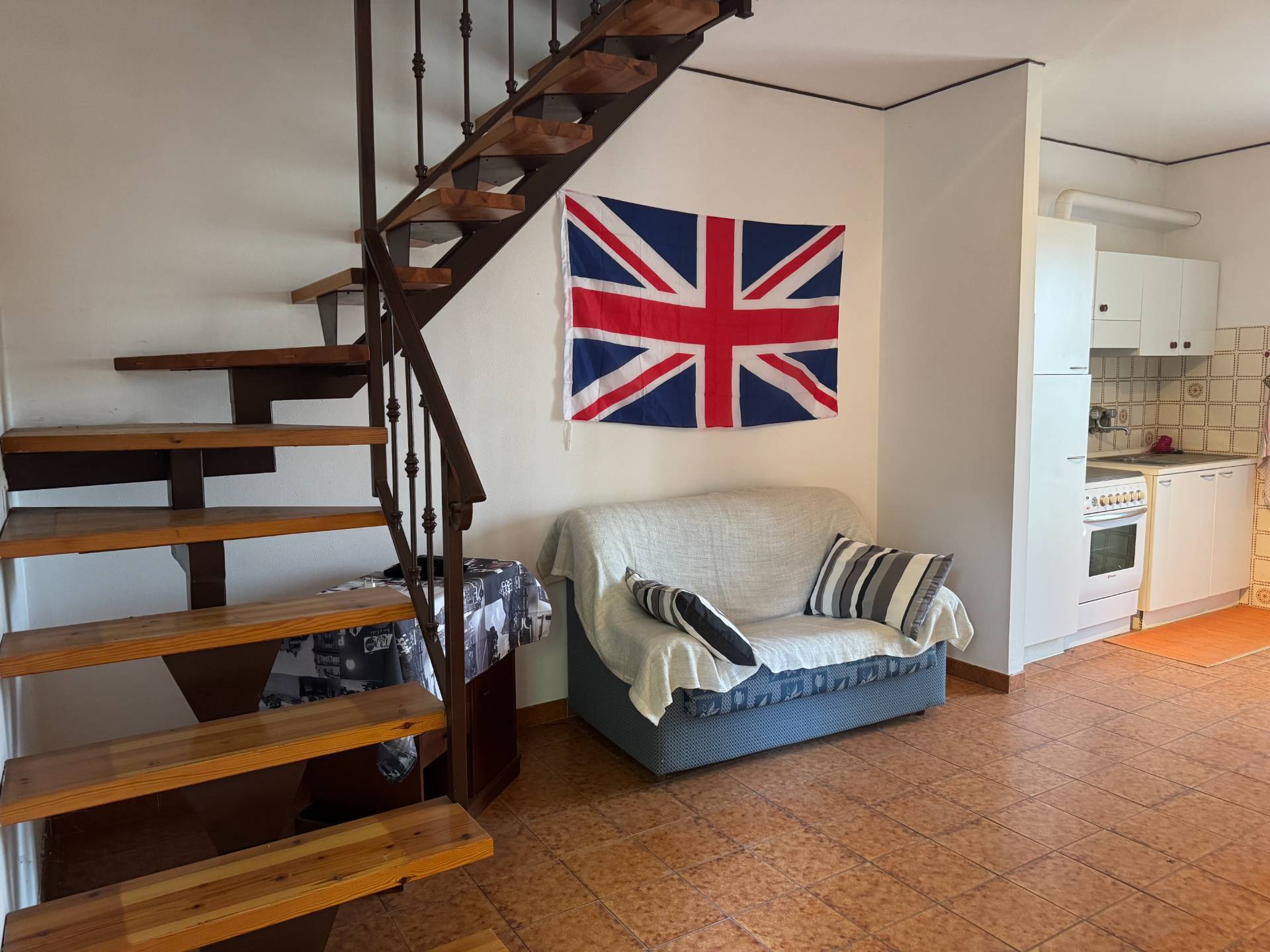 L'abitazione si sviluppa al piano primo con un ampio e luminoso soggiorno dotato di angolo cottura, caratterizzato da accesso diretto al balcone esposto al sole, perfetto per momenti di relax.