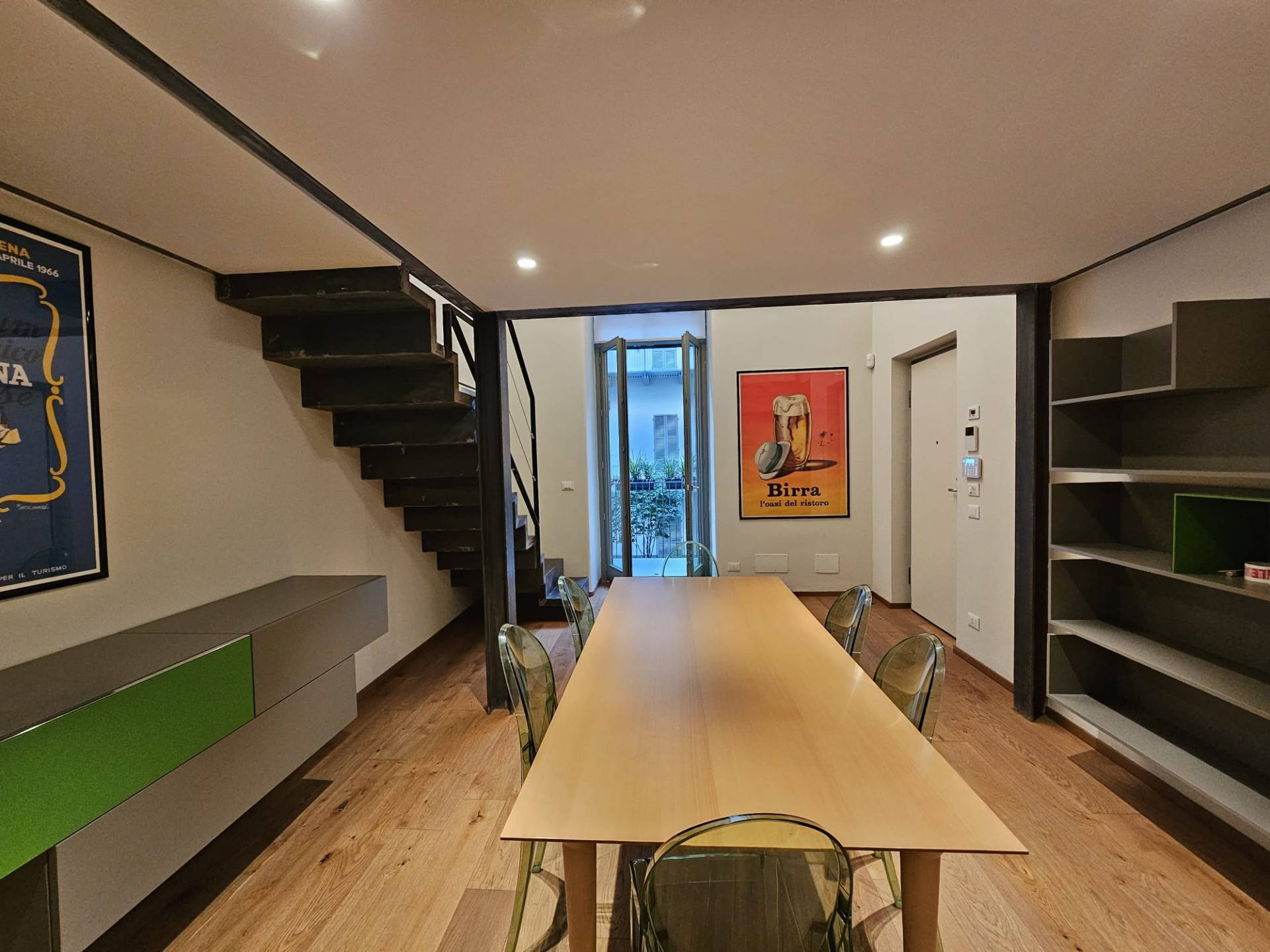 In Palazzo Lagrange, a prestigious historic building recently renovated in great detail, both in the common areas and in the individual housing units, we offer a beautiful three-room apartment, fully furnished, located on the second noble floor, structured as follows: living room with open kitchen and mezzanine (living room ceiling height: 4.40 m), two bedrooms, bathroom with window.