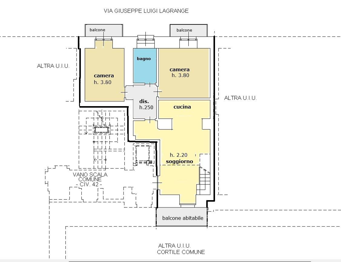 Due balconi su via Lagrange e ampio balcone abitabile su gradevole corte interna.